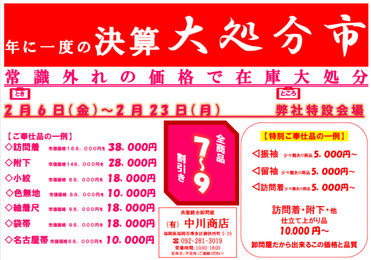 2/7(金)~2/24(月)年に一度の決算大処分市 開催!!!